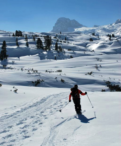 Leider ließ der unangenehme Winde keine Brotzeitpause zu, so dass wir uns lieber Richtung Simonyhütte und weiter Richtung Skigebiet Koppenstein orientierten. Bis dorthin gab es aber noch etliche kleinere und größere Gegenanstiege, die keine so richtige Abfahrtsfreude aufkommen ließen. Einzig der jetzt strahlende Sonnenschein und die grandiose Landschaft versöhnten uns.