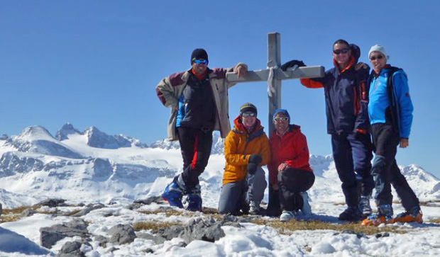Angesichts der schon beschriebenen Schneelage zog es uns auch man zweiten Tag auf das Dachstein-Plateau. Diesmal fiel die Tour dann sowohl von den Hm, als auch von der Wegstrecke her deutlich geringer aus. Genau genommen war unser Ziel, der Speikberg mit 2.125 m nur unwesentlich höher als die Bergstation, an der wir ausgestiegen waren. Aber der wolkenlose Himmel und die heute noch schönere Aussicht in die Runde ließen auch diesen Tag zum Erlebnis werden.