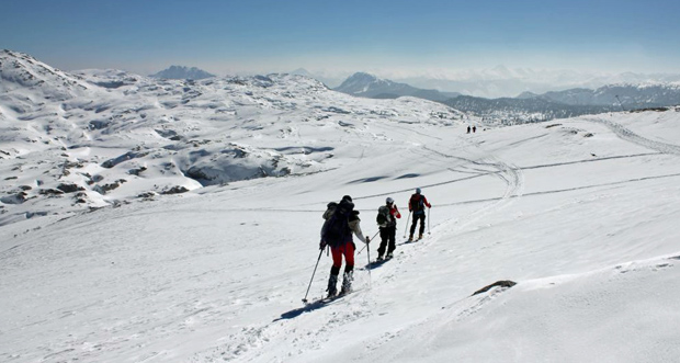 Nach viel auf und ab und einer ausgedehnten Brotzeit erreichten wir wieder die Skiabfahrt ins Tal. Wir waren uns alle einig, dass es allein schon die landschaftliche Schönheit dieser beiden Touren wert ist, einmal die Dachstein-Nordseite zu besuchen.