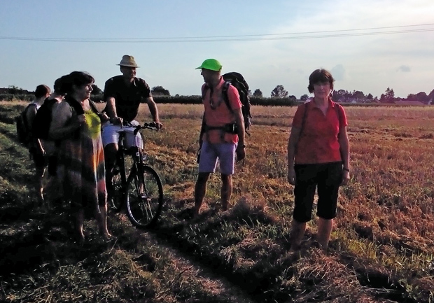 Wir setzten unseren Weg langsam tastend fort. Nach wenigen Minuten hatten wir uns an den steinigen Weg gewöhnt, der nur kleine Schritte zuließ. Links wurde ein Getreidefeld abgeerntet. Wollen wir es wagen, über das Stoppelfeld zu gehen? Na klar. Nun, so arg gepiekst wie vermutet hat es eigentlich nicht.