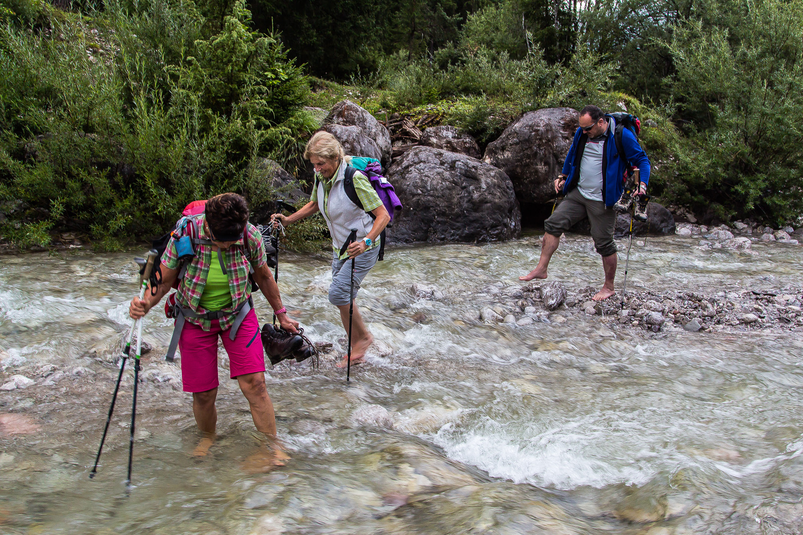 Kurz vor 8 Uhr starteten wir vom dortigen Wanderparkplatz gemütlich in Richtung Oberautal. Der Oberaubach, sonst ein kleines Rinnsal, zeigte aufgrund der starken Regenfälle der letzten Tage einen erhöhten Wasserstand, trockenen Fußes war dieser nicht zu überqueren. Was hilft´s, kurzfristig der Schuhe entledigt, ging es barfuß durch den Bach; das brachte den Kreislauf wieder richtig in Schwung.