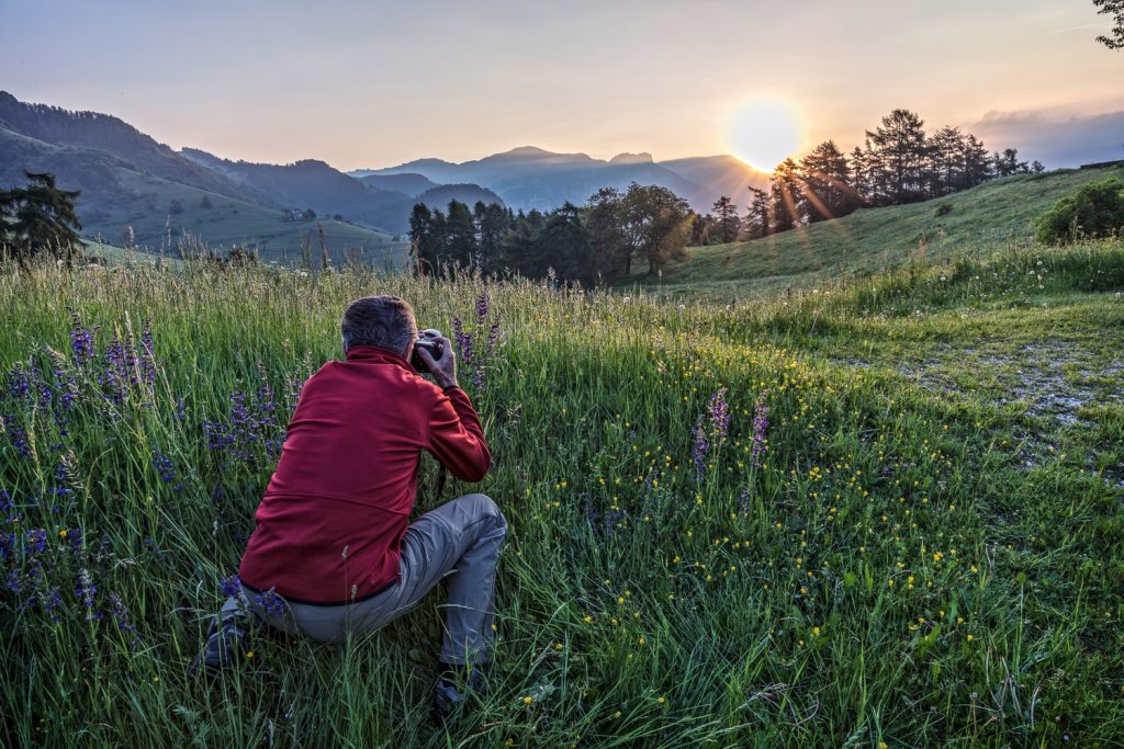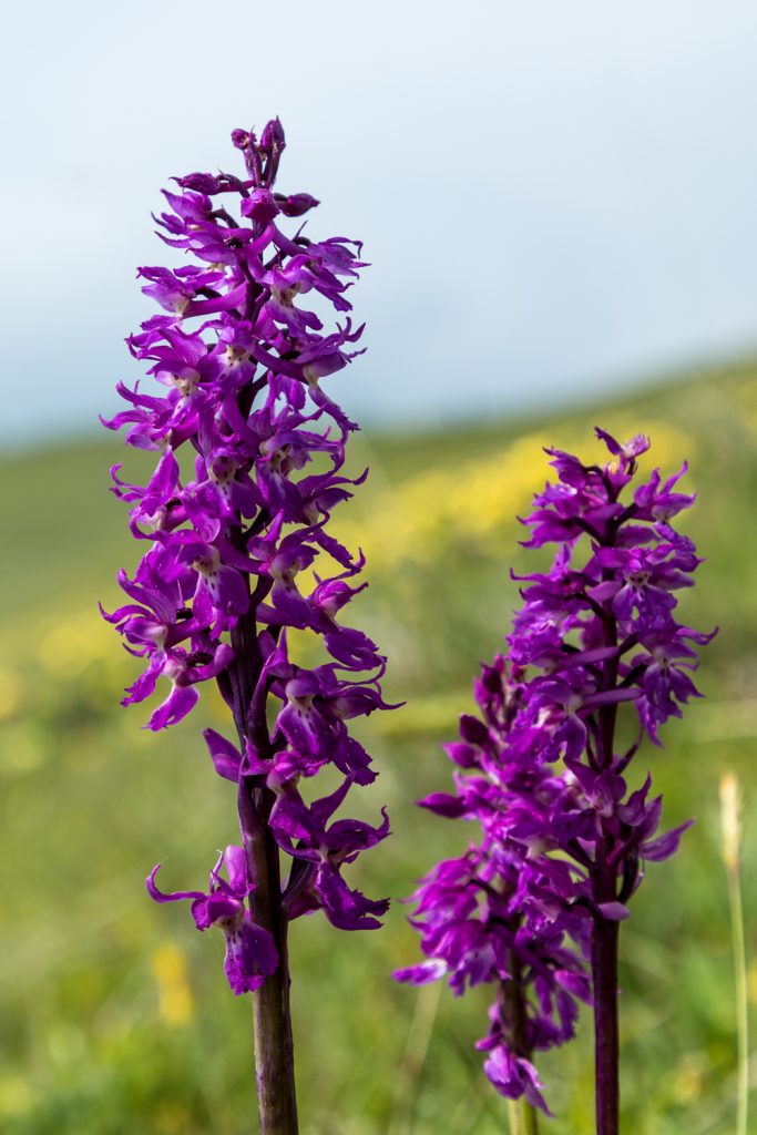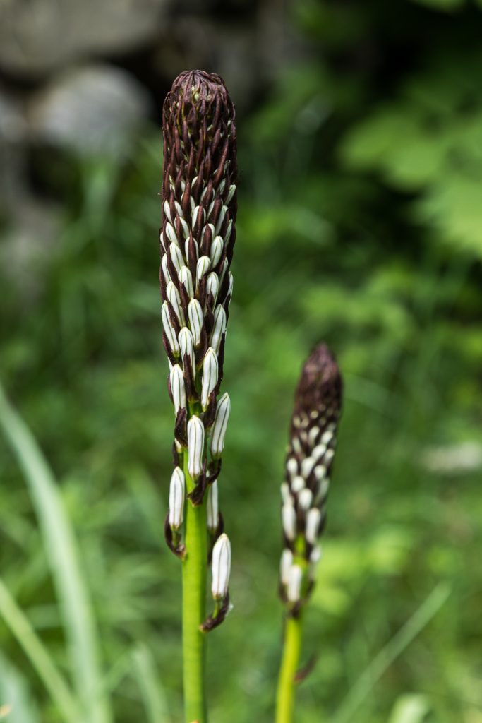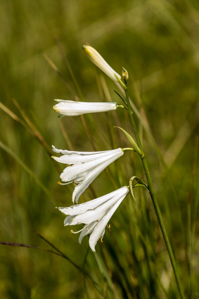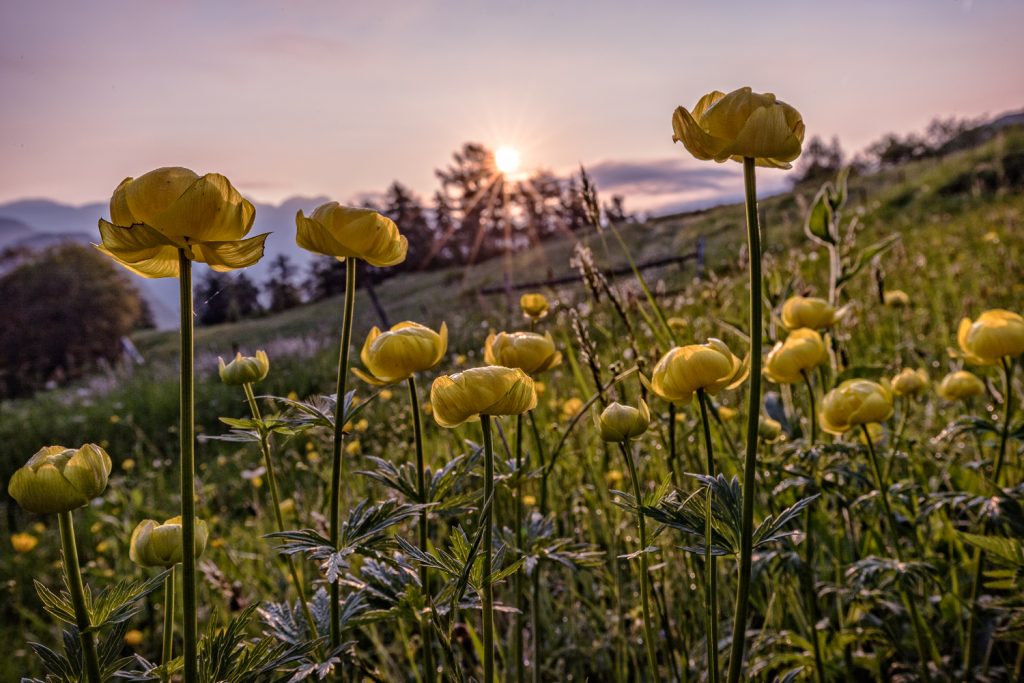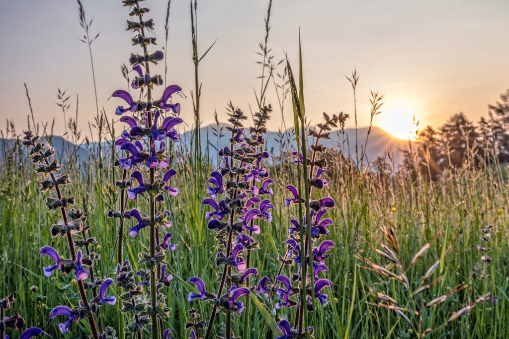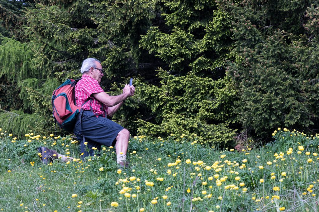 Gegen halb zwölf lichten sich dann die Wolken soweit, dass wir aufbrechen können. Wir wandern hinunter auf den Sentiero di Ventrar, der durch eine Blumenwiese auf der Westseite des Baldo abwärts führt. Und hier finden wir nun reichlich Wildblumen: Pfingstrosen, Graslilien, Läusekraut, Waldvögelein, Schnee-Anemonen, Holunder-Knabenkraut und und und …