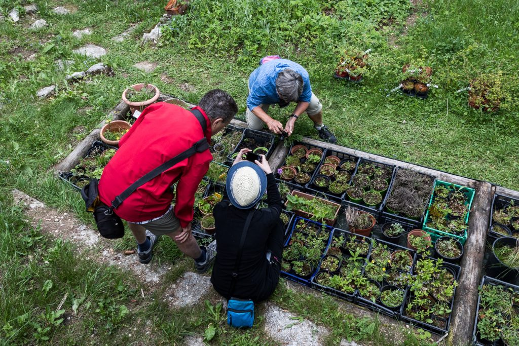 Wir essen eine Kleinigkeit zu Mittag und starten dann unsere erste Tour. Alex und Petra, die schon seit Samstag am „Lago“ sind, stoßen zu uns. Wir fahren zum botanischen Alpingarten „Orto Botanico“ in Novezzina. So richtig „in Betrieb“ sind die Pflanzen hier allerdings noch nicht – aber die Botaniker unter uns bestimmen trotzdem schon fleißig, was zu sehen ist.