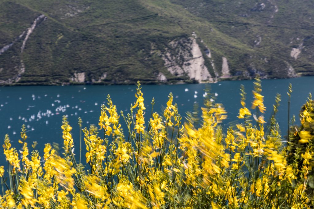 Für den Freitag hatten wir vereinbart, dass wir von der Bocca Navene zur Gipfelstation der Seilbahn, die von Malcesine heraufkommt, wandern wollen. Aber morgens hängen dicke Wolken im Berg … ohne Aussicht wollen wir da aber nicht wandern. Wir informieren Alex und Petra, dass sie nicht herauffahren sollen, sondern dass wir hinunter an den Gardasee kommen, um dort zu wandern. Unser neues Ziel: Die alte Ponale-Straße.