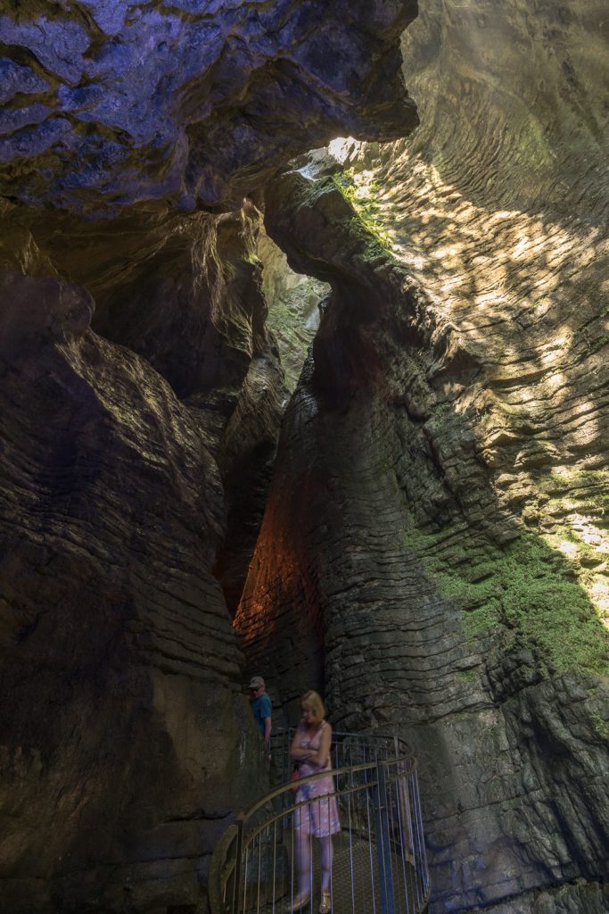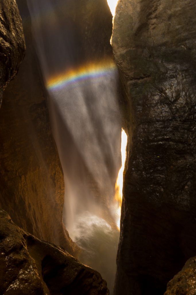 Es hat sich spektakulär eingegraben und schießt hier eine dunkle, enge Schlucht herunter. Prädikat: sehr sehenswert!
