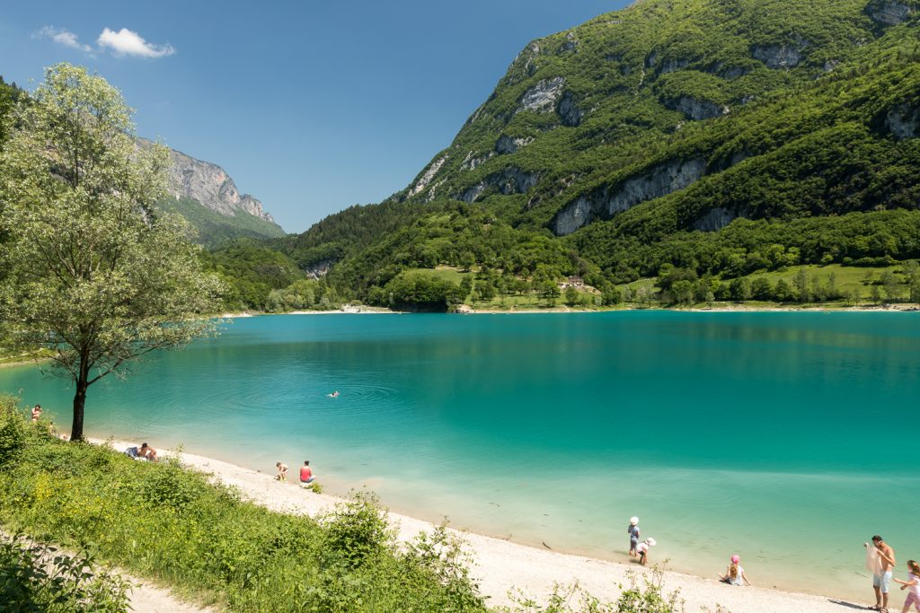 Wir schließen unsere Wasserfall-Tour mit einem Cappuccino ab und fahren dann weiter hinauf in die Berge zum Lago di Tenno. Dieser See ist ein wahres Kleinod unter den Gebirgsseen (der Fotograf betont, dass er nicht an der Farbschraube gedreht hat!).