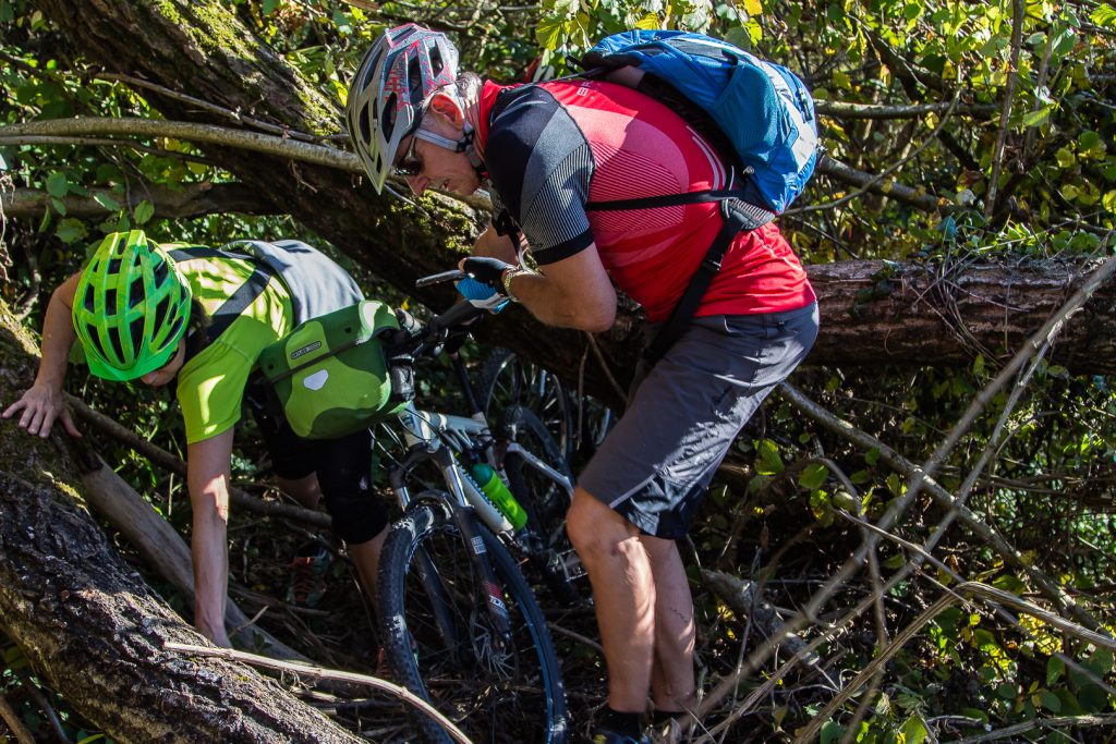 Von dort führt parallel zum Inn der Weg durch abgeerntete Felder nach Marktl. Und weil keiner durch Marktl hindurchwollte, nehmen wir bequemerweise einen kleinen Trampelpfad als Abstecher entlang des Inns. Eine schlechte Entscheidung, besteht auf der einen Seite Abrutschgefahr in den Inn warten auf der anderen Seite üppige Brennnesselbüsche auf uns. Und dann gibt s noch die Folgen der letzten Stürme zu überwinden; ein nicht einfaches Unterfangen, aber umkehren möchte auch niemand.